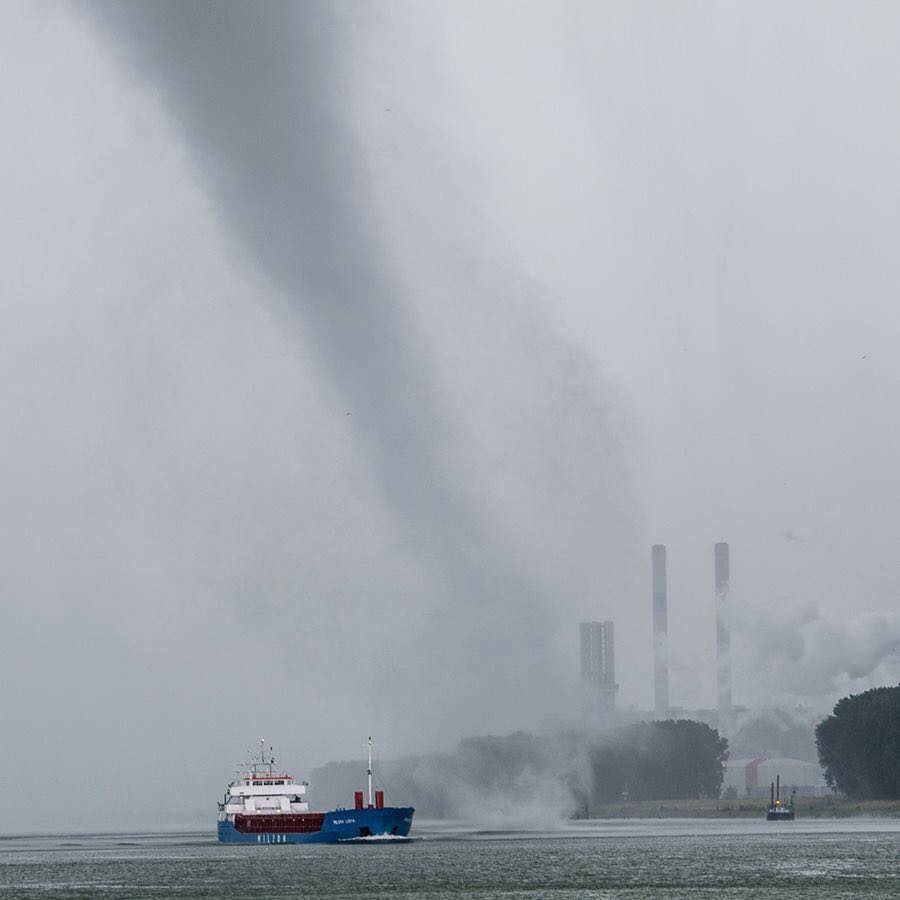Amazing closeup view of the waterspout over the Nieuwe Waterweg Rozenburg ZH, Netherlands today by Hans van Overbeek