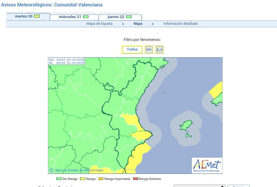 Avisos hoy de por lluvias. Precaución en las comarcas costeras del sur de la Comunitat.