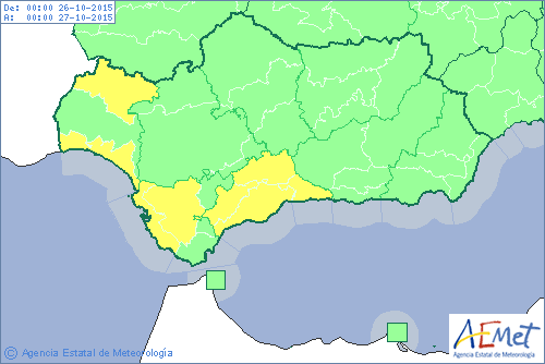 Avisos por lluvias para esta próxima madrugada en Cádiz, Huelva y Málaga