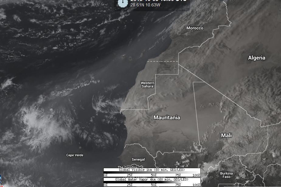 Irrupción masiva de polvo africano hacia el AN desde el oeste del continente y ramal ascendente por #Canarias