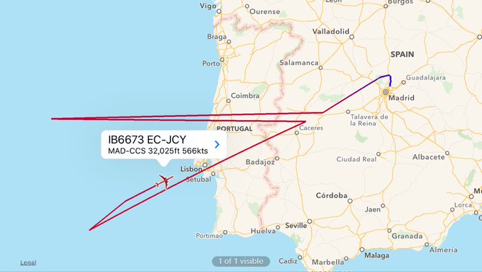 LIVE: Iberia to Caracas is returning to Madrid pic.twitter.com/TylYLIIsND - @NikPhillips666