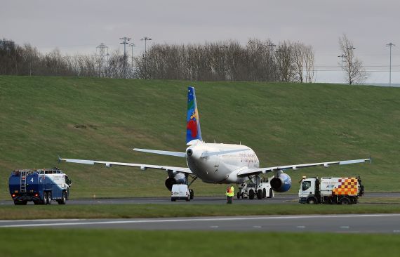 EMERGENCY A320 has ran off the taxiway into the grass at Birmingham Airport