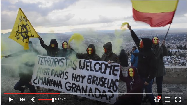 Y usan máscaras tipo Anonymous pero con la bandera de España.