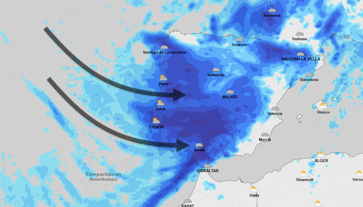 Lunes MUY LLUVIOSO en todo el oeste, centro y sur peninsular, con ambiente fresco y viento! ..