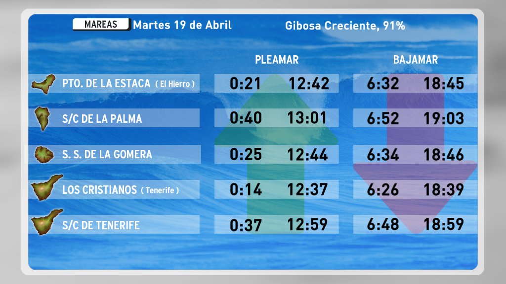Martes 19: Intervalos nubosos. Posible lluvia débil-dispersa N-NW islas relieve..