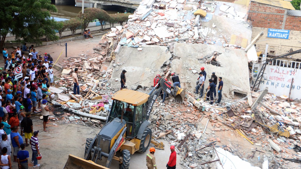 Shocking drone video shows collapsed overpass after deadly earthquake in Ecuador