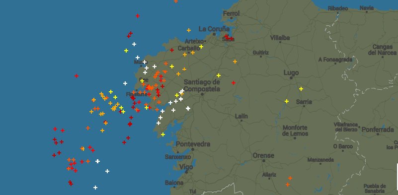Tarde TREBOENTA en #Galicia. A maior parte da activididade eléctrica...