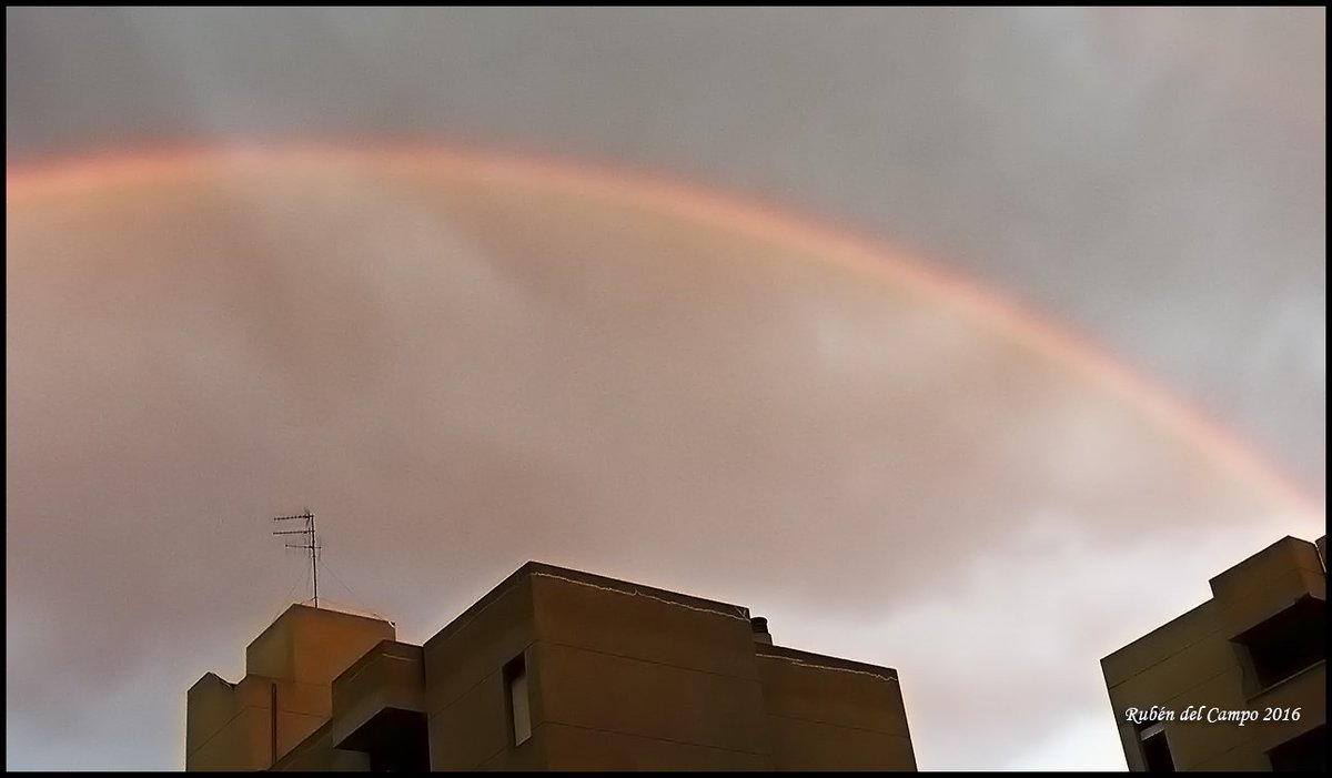 Cuando aparece el #arcoíris en el crepúsculo adquiere tonos predominantemente rojizos, como este. Ayer en #Castellón