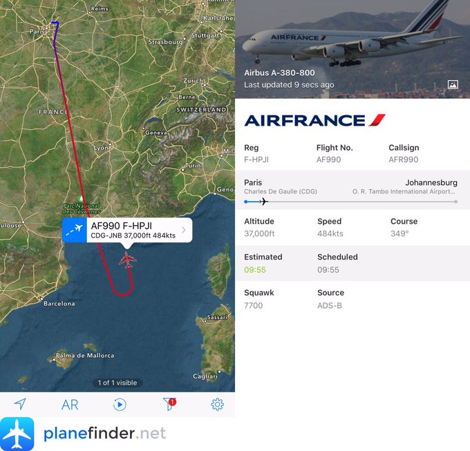 LIVE: Air France #AF990 to JoBurg has declared an emergency and returning