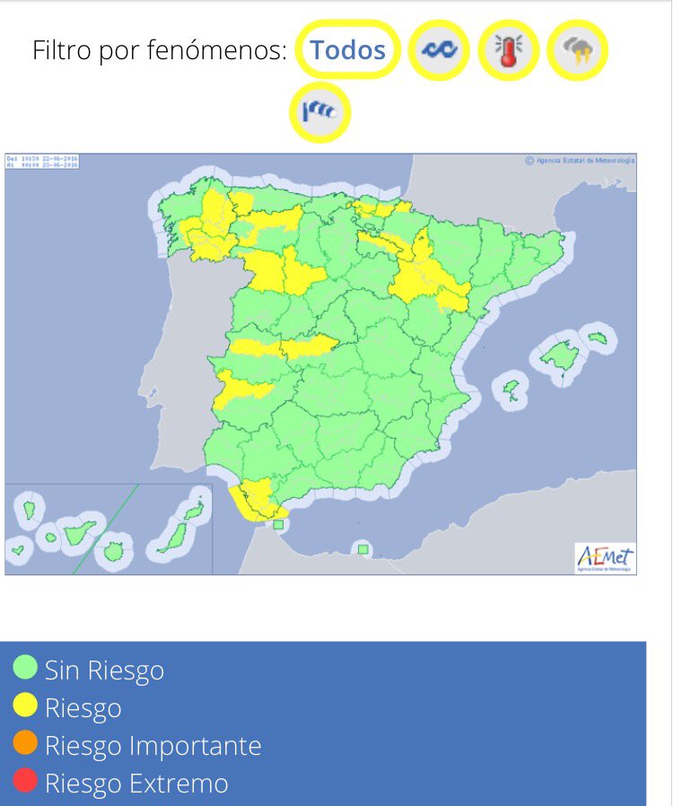 Hoy H2O, ropa cómoda y paciencia: calor intenso máx por encima de los 35•C en algunas zonas y⛈ en el NO y 🌬 SO