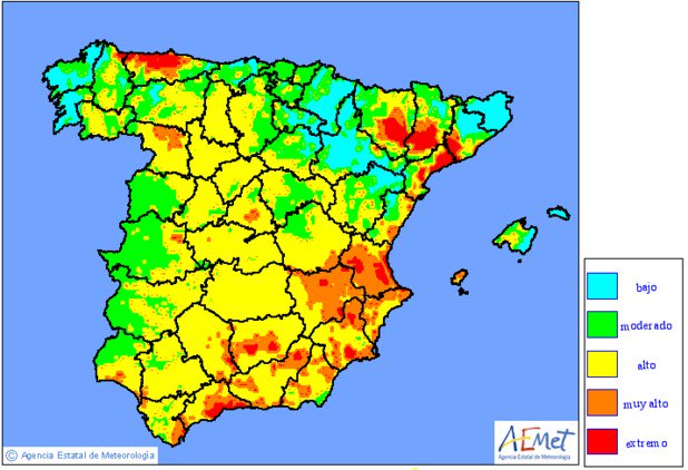 Mapa de niveles de riesgo de incendio forestal previstos Península y Baleares 14 junio-2016 Aumenta el riesgo