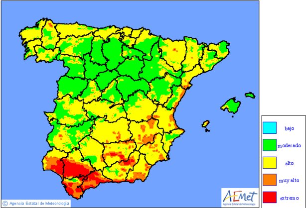 Riesgo muy alto de incendio forestal hoy Martes en la provincia. Si ves humo en el monte marca 1-1-2 #Malaga