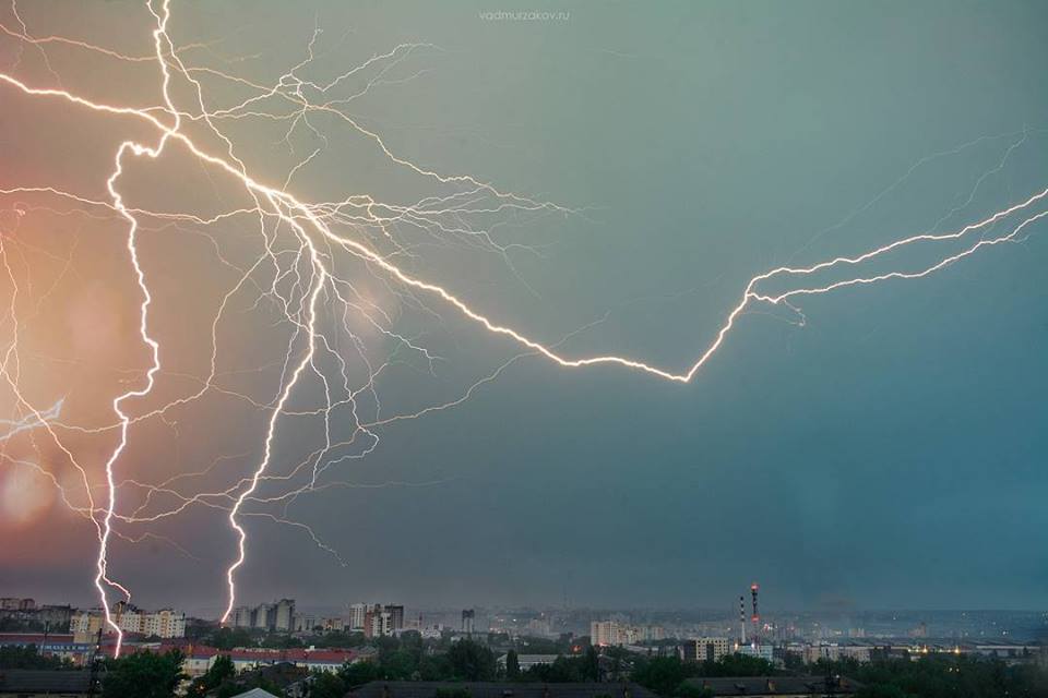 Spectacular lightning (!!) over Belgorod, Russia this morning! Photo: Вадим Мурзаков
