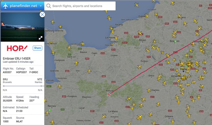 BREAKING Hop flight to Nantes is declaring an emergency. Track: http://airlive.net/emergency