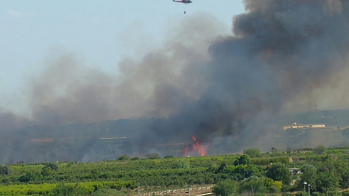 Incendi a Alfarb, fa 45 min avisats bombers i ja hi ha helicòpters i avions però les flames van molt
