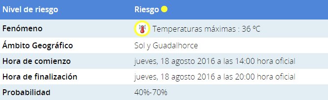 Aemet emite aviso amarillo para mañana Jueves en #Málaga por temperaturas de hasta 36ºC