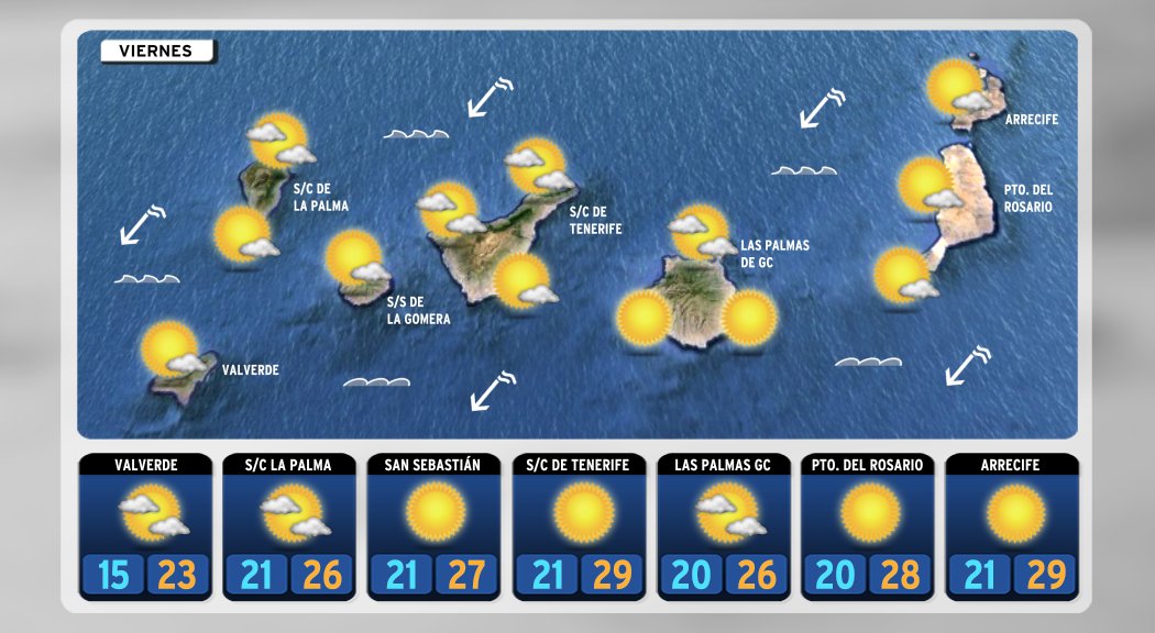 Viernes 19: Cielo poco nuboso o despejado, salvo en N-NE de las islas de mayor relieve donde ..