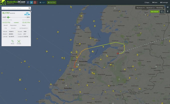ALERT KLM to Bremen has technical issue with a door lock, will return to Amsterdam https://www.radarbox24.com/flight/KL1757