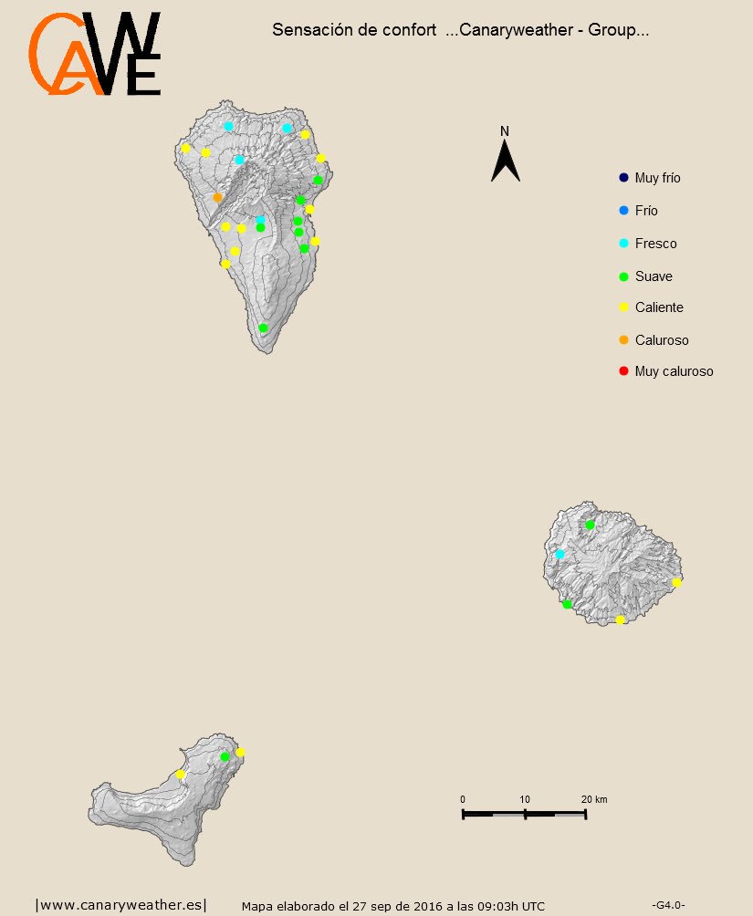 hoy en continuará estable con algunas nubes al N islas, soleado al S. Sensación térmica a estas horas: suave y caliente