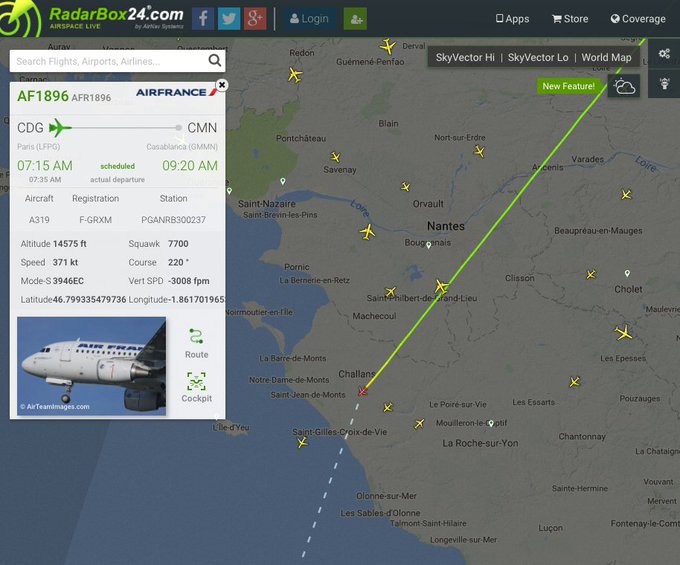 ALERT Air France #AF1896 to Casablanca is declaring an emergency and diverting to Nantes