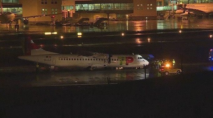 ALERT TAP Portugal Flight nose gear collapsed on landing during the night at Lisbon Portela Airport (@cmjornal)