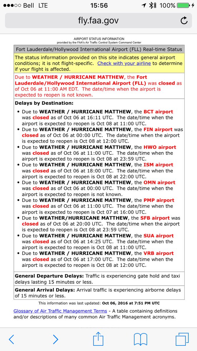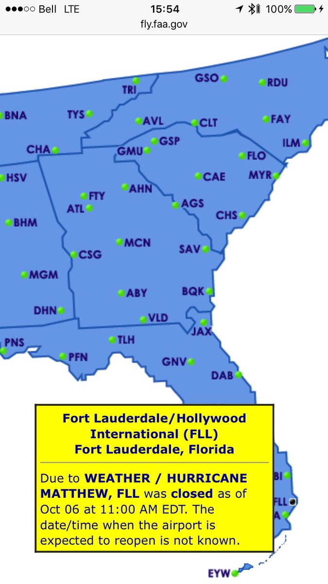 Ft Lauderdale Airport closed along with several surrounding airports. #HurricaneMatthew.