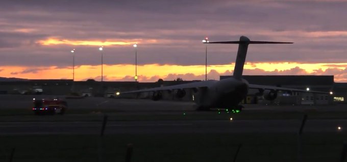 VIDEO Canadian Air Force C17 birdstrike emergency landing at Prestwick Airport tonight