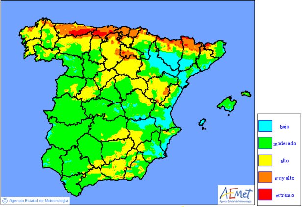 Riesgo de incendio forestal para hoy, jueves 3 de noviembre. Buen servicio a todos los medios!